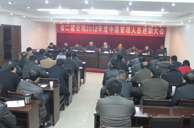 2012年12月29日上午,安徽二建在三楼聚会室举行了2012年度机关中层管理职员述职测评大会,机关29名中层管理职员举行了述职和民主测评 。