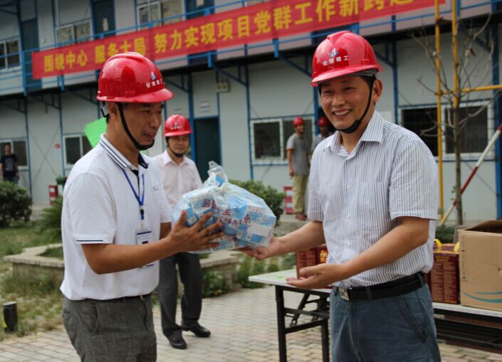 牛曙东副书记一行还为奋战在建科院项目的一线职工送上了毛巾、绿豆、白糖、凉茶、风油精、十滴水等防暑降温用品和药品  ,并嘱咐高温季节要合理安排作息时间  ,确保施工现场作业清静  ,避免泛起高温中暑情形  ,要站在清静生长的高度  ,切实将防暑降温事情安排好、落实好  ,包管职工清静度夏 。
