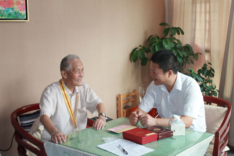 在抗战老兵金保荣、岳林、李辉和李靖家中 ,刘书记与老兵们促膝攀谈 ,谛听他们回忆革命战争时期的峥嵘岁月 ,同时还关切地询问他们的生涯起居、身体状态和家庭情形 ,向他们表达亲热的问候 ,并将抗战胜利70周年岁念章及5000元慰问金送到他们手中 ,嘱咐他们要珍重身体;当得知老兵们的晚年生涯获得很好的照料 ,刘书记很是兴奋 ,他嘱咐随行的相关职员 ,要切实关注抗战老兵的晚年生涯 ,经常相识他们的生涯状态 ,用现实验动资助他们解决生涯中的现实问题。