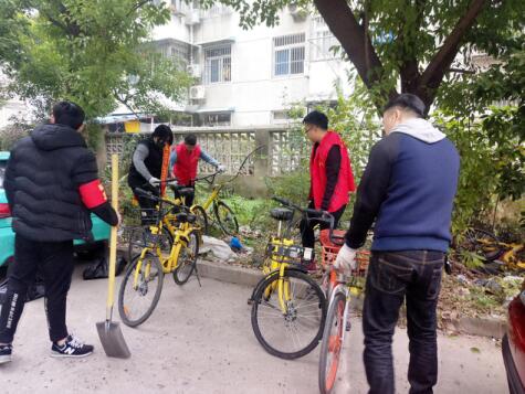 早上8点,所有加入运动的青年自愿者准时在公司大门前荟萃, 前往裕溪路社居委,在社区事情职员的配合下整理公司生涯区绿化带中的种种垃圾以及隐藏在绿化带中的破旧共享单车。
