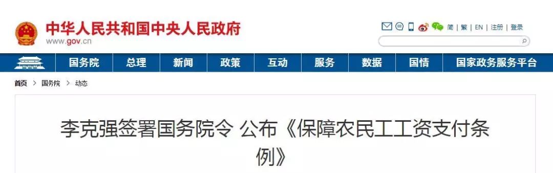 国务院总理李克强日前签署国务院令,宣布《包管农民工人为支付条例》(以下简称《条例》),自2020年5月1日起施行。