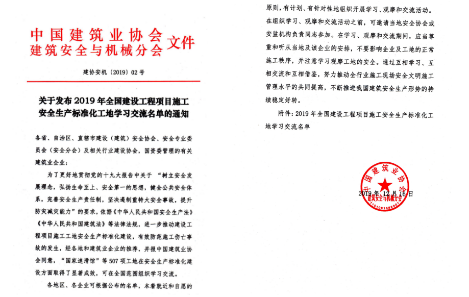 安徽二建公司建设2019年度清静生产标准化树模工地数目创历史新高
