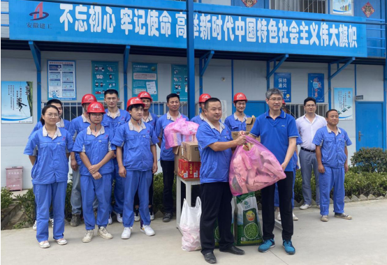 731日下昼,烈日炎炎,暑气蒸人,公司副总司理余华恒、工会女工主任王俊一行赴文一·塘溪津门、文一·春风里项目送清凉,探望和慰问奋战在施工一线项目管理职员。