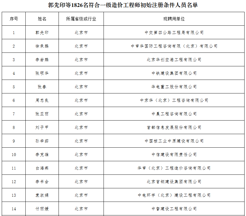 点击图片审查切合一级造价工程师初始注册条件职员完整名单