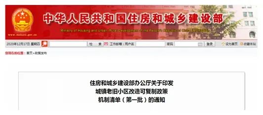 住房和城乡建设部印发城镇老旧小区刷新可复制政策机制清单(第一批)